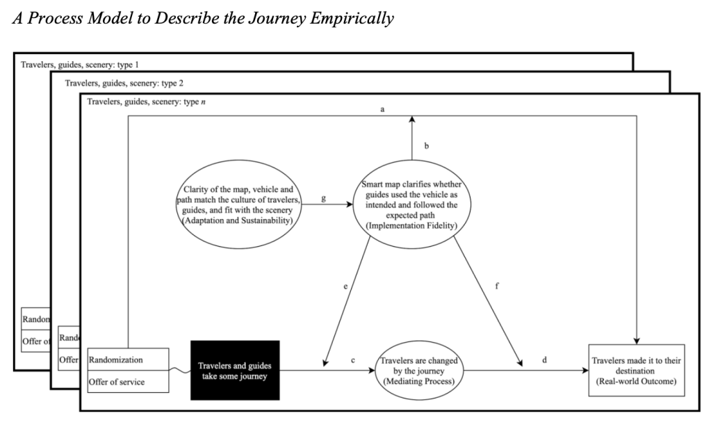 To avoid these pitfalls, I frame applied research using the elements of the journey metaphor below. The metaphor illuminates otherwise invisible elements of what makes a program work (or not). In doing so, it paves a path forward to translatable programs that work and can be sustained.
